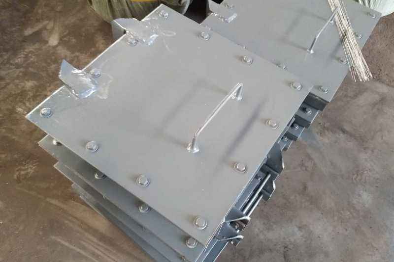 矩形人孔主要由門框、門洞、門框架組成,其特征在于門框架體為凸形墻板與門框用螺釘相連接而成,門蓋為錐形瓶塞狀,門框架體一側(cè)在轉(zhuǎn)臂架上用軸活動(dòng)連接有轉(zhuǎn)臂,轉(zhuǎn)臂中間軸式連接有門蓋,并且門蓋與轉(zhuǎn)臂之間還設(shè)置有緊鎖裝置。本產(chǎn)品開關(guān)靈活、防溫隔熱、不易變形。